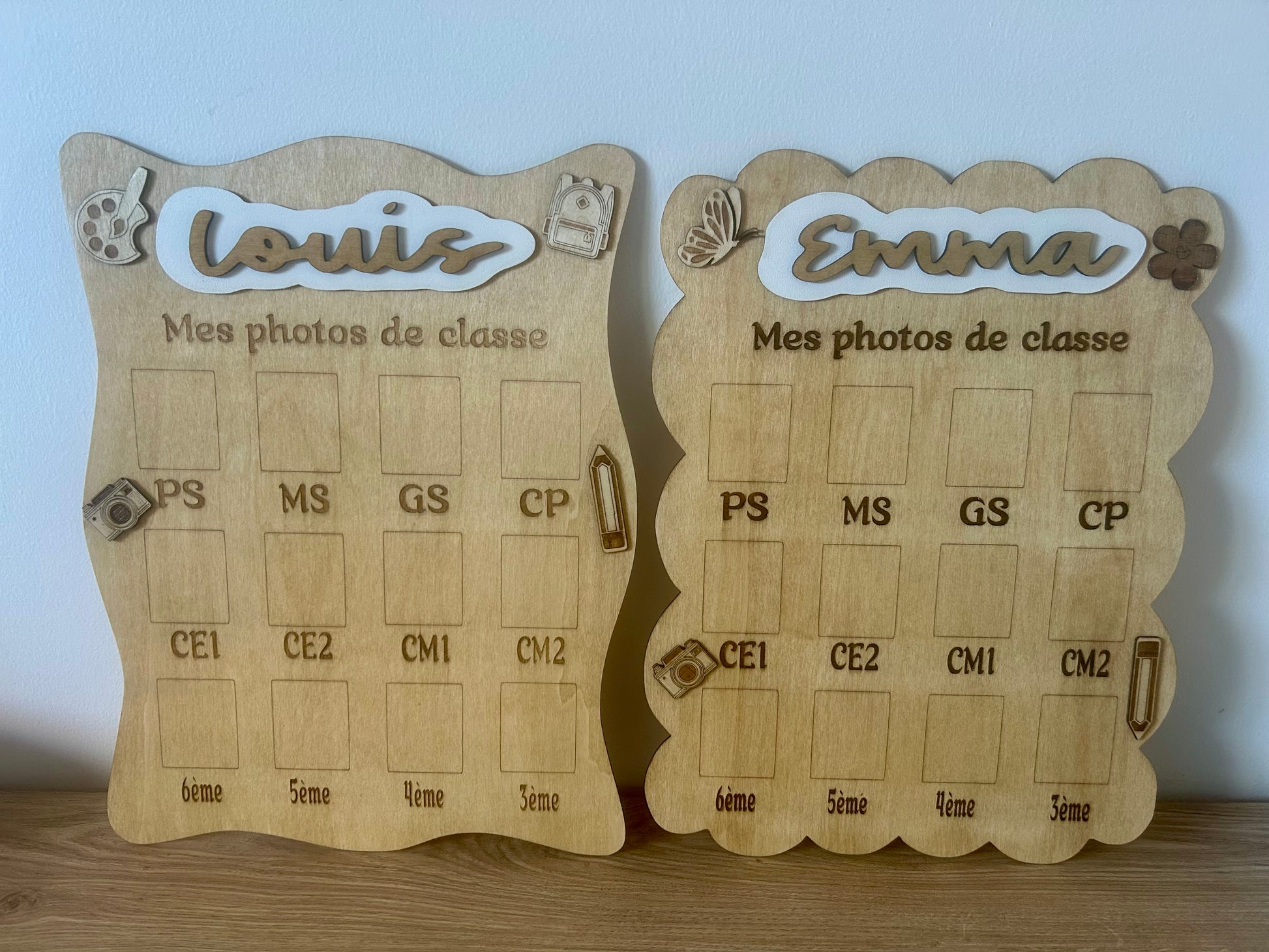 • 1 emplacement photo par année scolaire (12 cases au total)