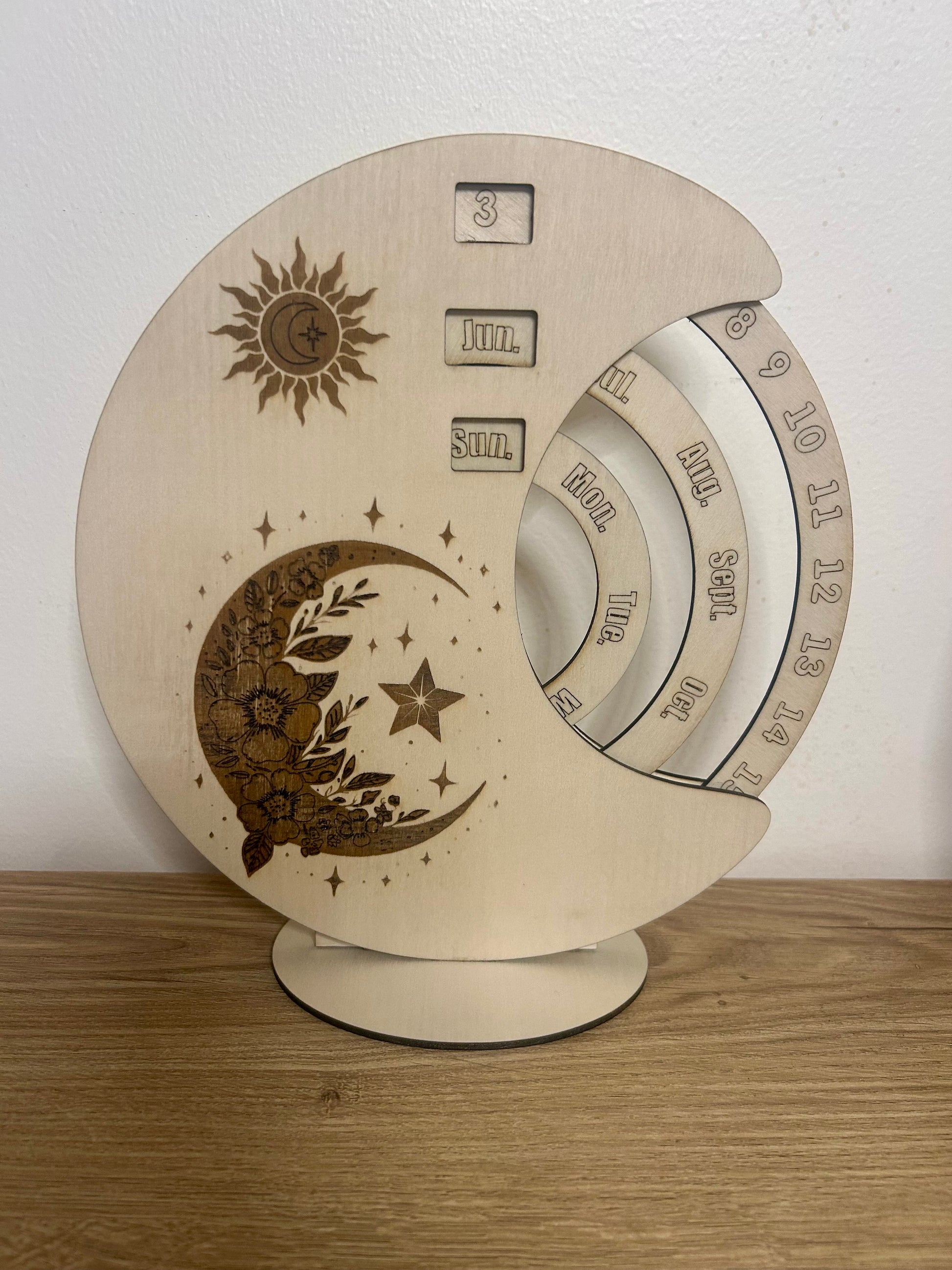 🗓️ Calendrier perpétuel en bois personnalisé – Découpe & gravure artisanale