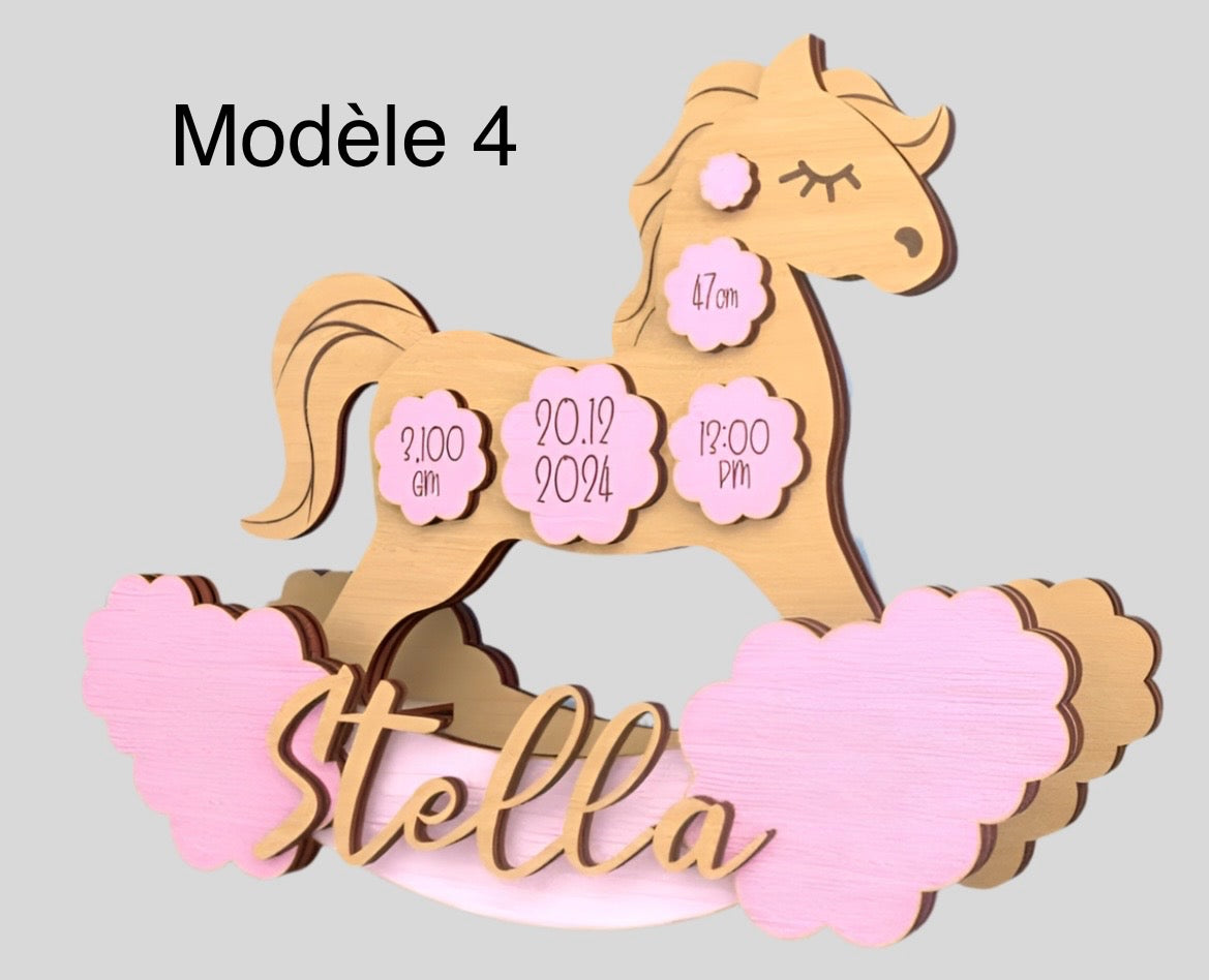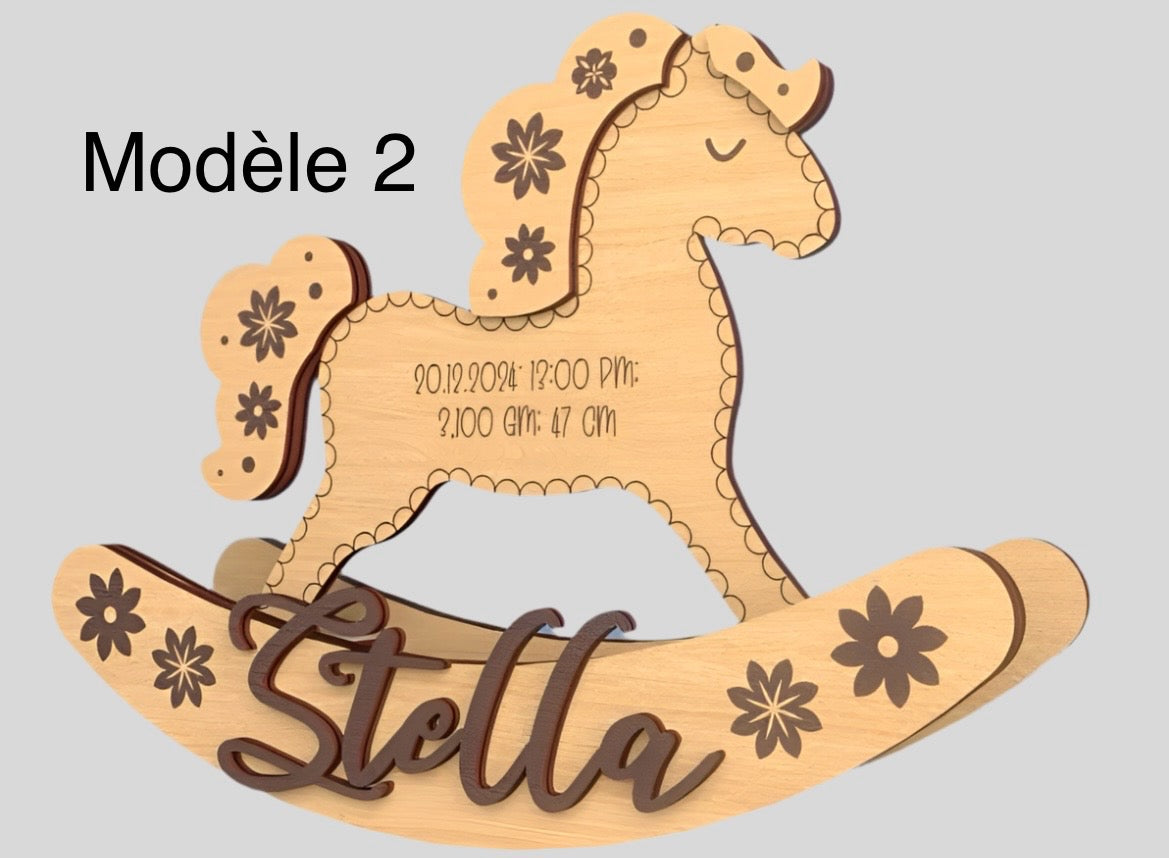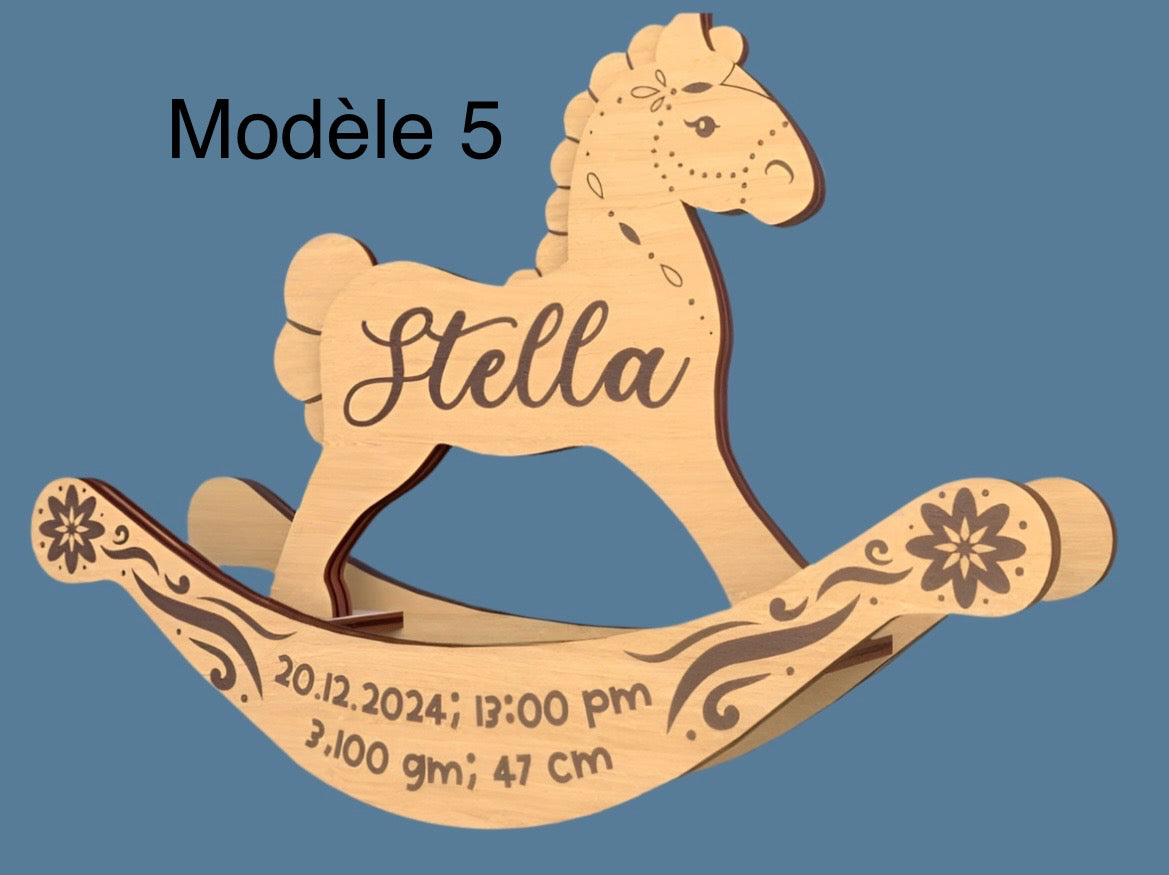 🪵 Cheval à bascule personnalisé – Souvenir de naissance unique